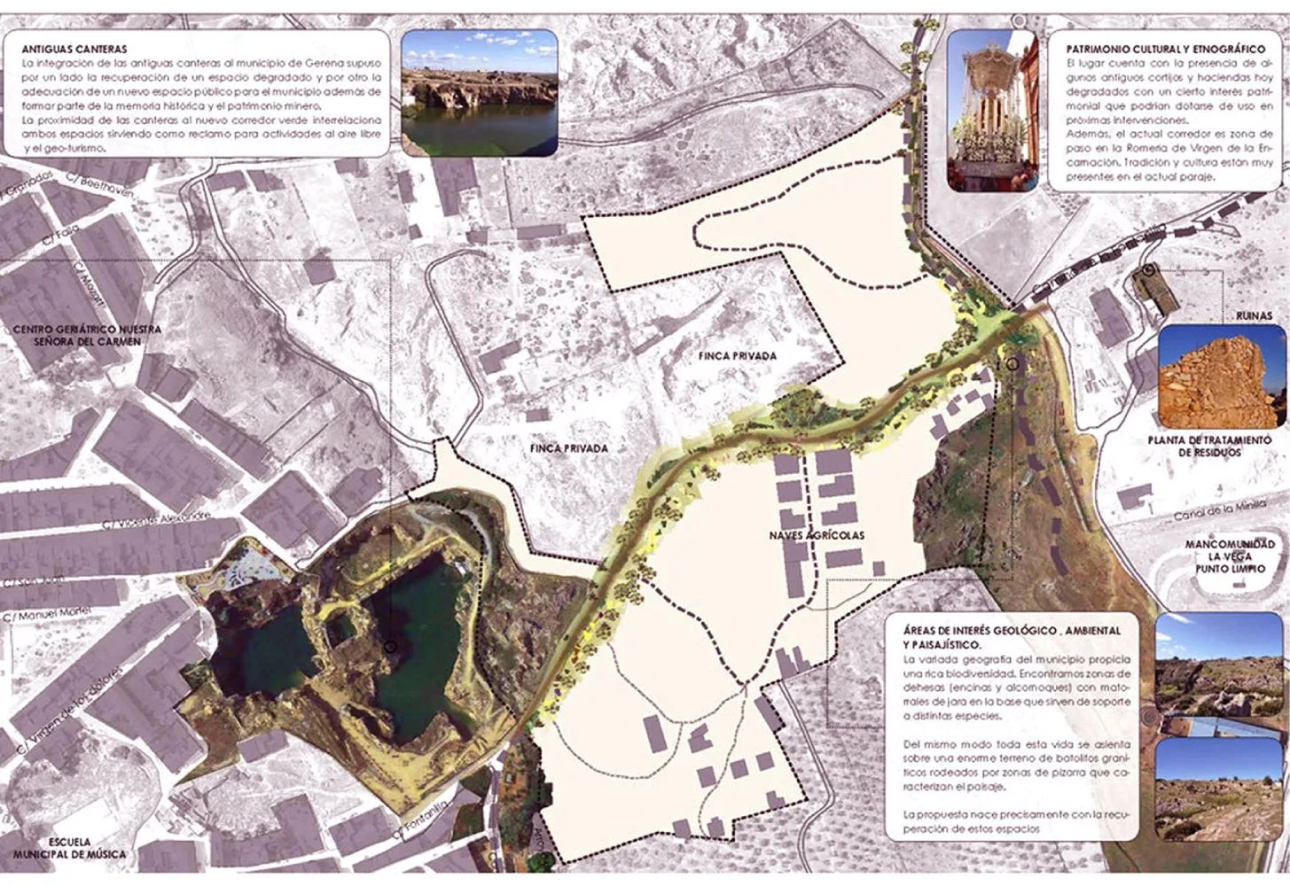 La zona propuesta de estudio “La Fontanilla”, supone un enclave relevante y de cierta envergadura en la parte este del municipio de Gerena. Su puesta en valor supondría incrementar el potencial turístico del municipio ya que gracias al enclave natural en el que se encuentra, se pueden llegar a ofrecer una interesante variedad de recursos e infraestructuras turísticas puestas al servicio de sus visitantes: partes de rutas temáticas, senderos locales, ecoturismo, actividades de naturaleza y deportivas, etc.
